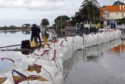 Los vecinos llevan siete días encerrados en el Ayuntamiento mientras la Xunta ha empezado a colocar sacos de arena en la entrada de las fincas para bombear el agua para evitar que llegue a las casas. Operarios de Tragsa se afanaron ayer en abrir una pista trasera para que los vecinos puedan entrar en su propiedad sin tener que saltar los muros.