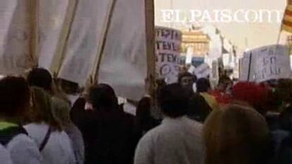 Los pescadores regalan 20.000 kilos de pescado ante el Ministerio en Madrid para exigir medidas contra la subida del gasóleo