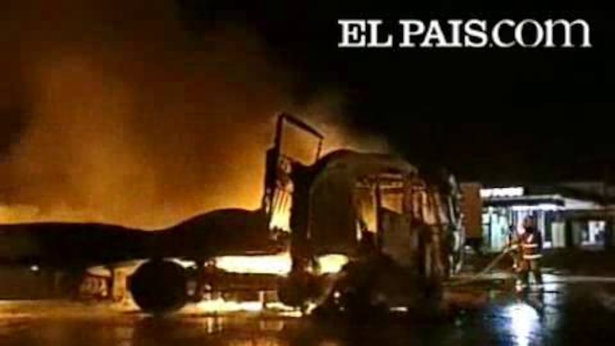 Los camiones estaban estacionados en batería junto a otros vehículos en el polígono industrial de Las Granadinas de San Isidro (Alicante) cuando comenzon a arder. El incendio podría haber sido intencionado.