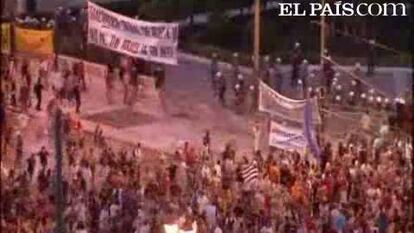 Los diputados acuerdan el calendario de privatizaciones y los primeros aumentos de impuestos.- Jóvenes encapuchados y policías se enfrentan hasta la madrugada, con un saldo de 700 personas heridas