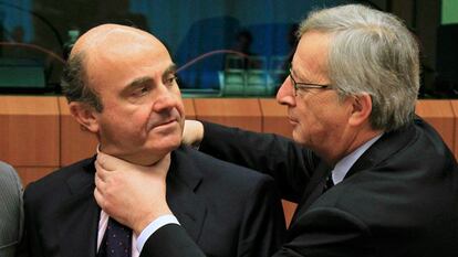 Al igual que ha hecho hoy con el ministro alemán, Guindos reveló que también se ha reunido con los responsables de Economía de otros países, entre ellos Francia. "Hay que tener en cuenta que la desviación el año pasado fue de 2,5 puntos y que las circunstancias del crecimiento, además, han cambiado", justificó Guindos antes de destacar que ha hallado comprensión entre los socios comunitarios. El propio presidente del Eurogrupo, Jean-Claude Juncker, quien sorprendió al ministro español con un peculiar saludo agarrándole primero del cuello para acabar fundiéndose en un abrazo con él, se mostró aparentemente en sintonía con esta posición. "Asumimos que España puede y quiere alcanzar los objetivos de déficit en 2013", aseguró Juncker antes del Eurogrupo, que finalmente, fijó un nuevo objetivo de déficit del 5,3% para España.