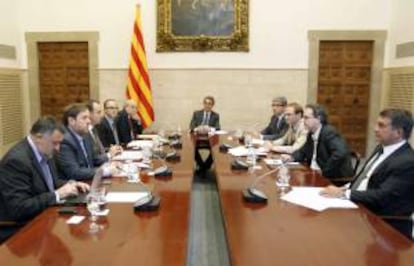 Mas ha presidido la sesión, acompañado del portavoz del Govern, Francesc Homs; por parte de CiU han asistido Jordi Turull y Ramon Espadaler, ICV-EUiA estaba representada por Joan Herrera y Jordi Miralles, de ERC han acudido Oriol Junqueras y Joan Puigcercós, mientras que por parte de Democracia Catalana estaba Joan Laporta.