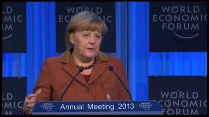 La canciller propone ayudas transitorias porque las reformas "tardarán años" en dar fruto Pide evitar la manipulación de las divisas desde el Foro Económico Mundial