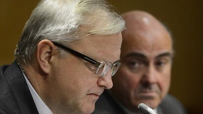 Madrid fue el lunes una plaza muy europea. Y otra vez se volvió a hablar de bancos, crédito y rescate. La coincidencia de la llegada de los inspectores de la troika —Comisión Europea, Banco Central Europeo (BCE) y el Fondo Monetario Internacional (FMI)— para revisar si España cumple las condiciones del rescate (mientras se espera la llegada de los 1.865 millones de la segunda parte de las ayudas financieras), y la visita de Olli Rehn, vicepresidente de la Comisión y responsable de Asuntos Económicos, acapararon la agenda política del día.