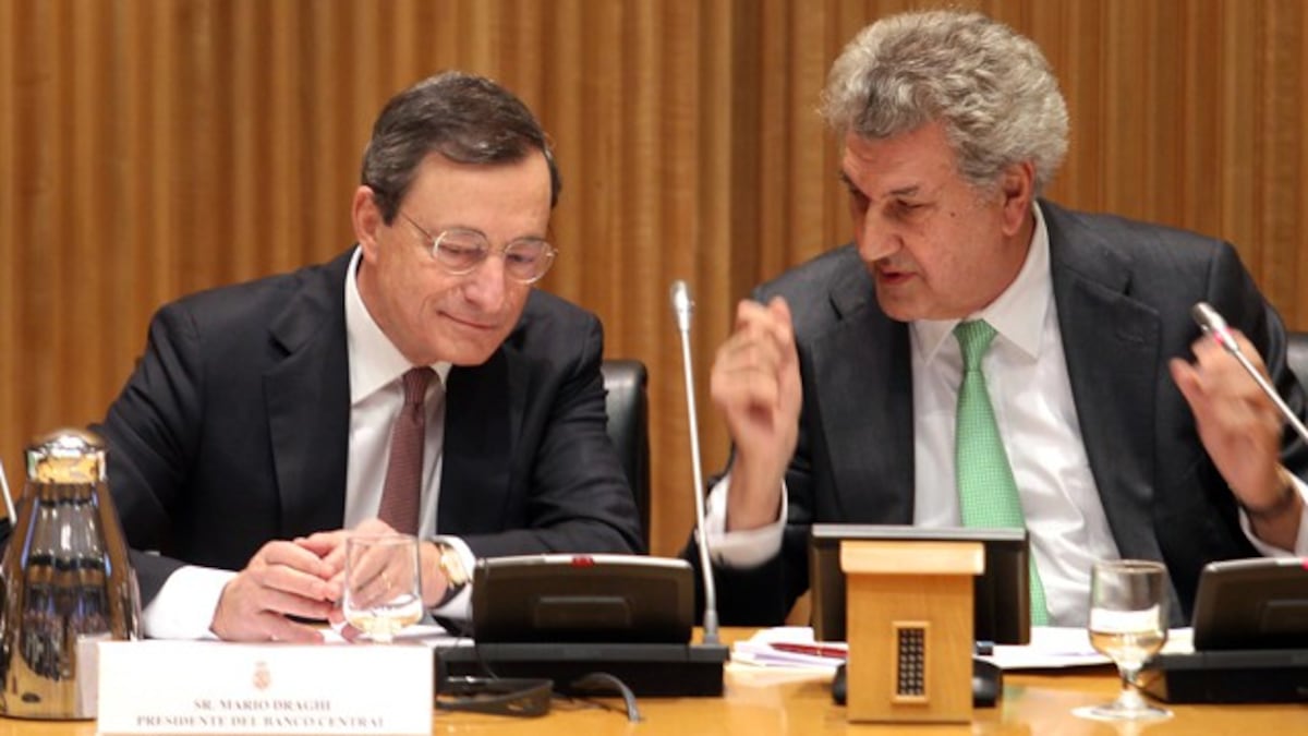 Se reunió después en Moncloa con el Rajoy y se vio en el Congreso con el gobernador del Banco de España, Luis María Linde, que también escuchaba al banquero italiano en la rueda de prensa. Después de que España tuvo que solicitar el rescate de Europa para la banca, el BCE y Bruselas han diseñado la reforma que cambiará de arriba abajo el mapa financiero español y pone al sector bajo la vigilancia del organismo del Fráncfort. “España tiene probablemente el mejor sistema de saneamiento de la zona euro”, apuntó el presidente del BCE. Draghi reconoció el “enorme progreso obtenido” por España. “Si observamos los progresos alcanzados por ustedes, tienen que felicitarse por ello”, enfatizó, pero admitió que las mejoras no han calado en la sociedad. Los ciudadanos “no deberían sentir que han sido abandonados a su suerte”, señaló.