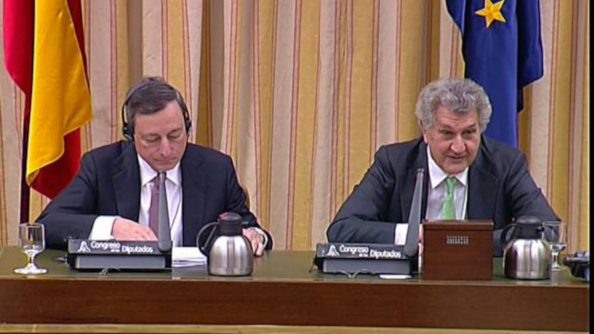Mario Draghi pudo este martes comprobar de primera mano el clima social que algunas de las heridas más graves de la crisis están causando entre los españoles: una mezcla rara de enfado, desánimo y sobre todo frustración. Mientras en la calle protestaban los activistas contra los desahucios, el presidente del Banco Central Europeo (BCE) compareció en el Congreso de los Diputados para reconocer los avances y reformas llevados a cabo en España, que sufre su segunda recesión económica en tres años, pero también para dejar claro que la austeridad sigue siendo necesaria y que la estabilidad de los mercados demanda hojas de ruta concretas a los países de la Eurozona. Es precisamente la falta de concreción en los programas de ajustes lo que en varias ocasiones los inversores han recriminado al Gobierno de Mariano Rajoy desde que llegó al Gobierno.