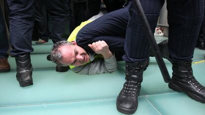Casi el 100% de los trabajadores convocados al paro secuenda el primero de los quince días de huelga, según los sindicatos La policía carga contra los manifestantes y hay cinco detenidos y un herido