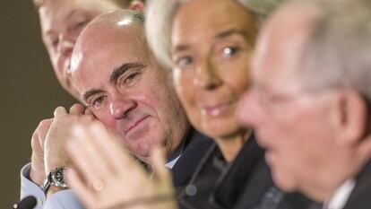 El Gobierno quiere rentabilizar en Bruselas la salida limpia del rescate financiero. “2014 va a ser el primer año en el que España crecerá casi el 1% y creará empleo neto”, ha señalado el ministro durante el acto de presentación de Empleos y crecimiento: apoyando la recuperación europea, el libro editado por el Fondo Monetario Internacional (FMI), en el que han participado Guindos, el ministro alemán de Finanzas, Wolfgang Schäuble y la directora gerente del Fondo, Christine Lagarde.
