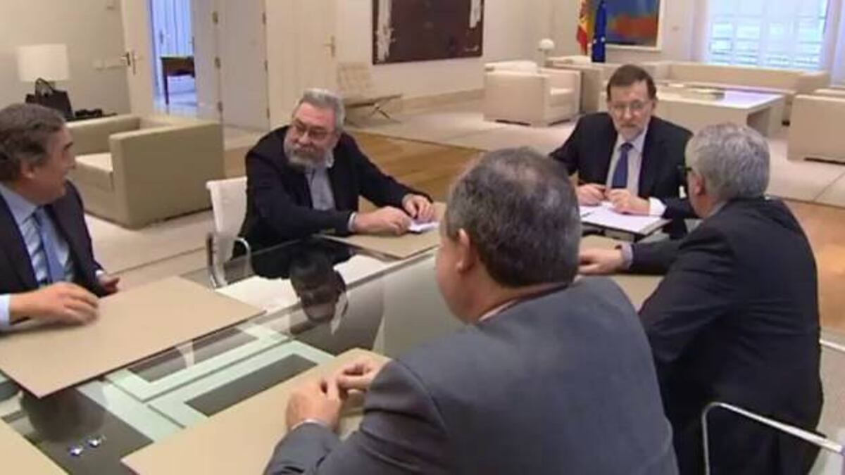 El presidente del Gobierno recibe a Toxo y Méndez por cuarta vez en la legislatura Acuerdan fijar un calendario, reformar el sistema de formación y hablar de impuestos