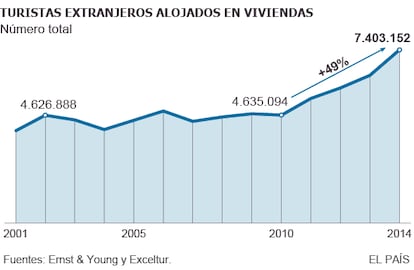 EY carga contra las viviendas turísticas por el fraude: "Una parte relevante de esta oferta pertenece a la economía sumergida y tiene tratamientos fiscales no contributivos", dice su informe. Calcula que las rentas pueden ascender a 2.054 millones de euros anuales. E indica que "si ninguno de estos propietarios estuviera declarando los ingresos obtenidos", una premisa sorprendente, con un tipo medio del 21% estaríamos ante un potencial fraude cercano a los 432 millones anuales. Además, critica que el alquiler entre particulares esté exento de IVA, a diferencia de los establecimientos reglados, lo que podría añadir otros 367 millones de recaudación.