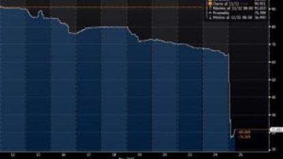 Los bonos de Abengoa se desplomaban poco después de que se conociese la decisión de Gestamp de retirar su oferta por el 28% de la compañía y el posterior preconcurso de acreedores de la firma sevillana. A las 10.45, un cuarto de hora antes de que se reiniciase la cotización bursátil de la firma sevillana, sus bonos caían más de un 65% y se situaban en su mínimo histórico. En las dos últimas semanas, el desplome es superior: de más de un 76%, según datos de Bloomberg.