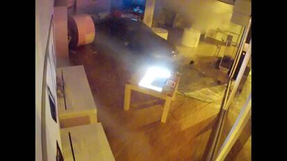 Las cámaras de seguridad lo grabaron todo. Con el alunizaje, durante la madrugada del miércoles al jueves, el coche logro tras varios golpes acceder a la tienda. Un ladrón entra a pie. Poco después, llega otro. Sin embargo, la mercancía parece estar en la parte trasera del comercio, así que continúan con el coche tratando de destrozar la pared que les separa del almacén. Tras varios golpes marcha adelante y marcha atrás, el polvo y el humo del sistema de seguridad llena la escena. Y ahí termina el robo.