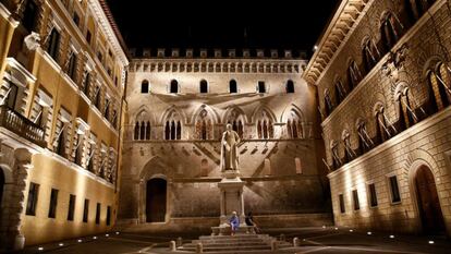 No es fácil encontrar un parche del tamaño del agujero que sufre la banca italiana, cuyo exponente más dramático es el Monte dei Paschi de Siena (MPS), la tercera entidad financiera del país, que entre el lunes y el martes se depreció un 30% en la Bolsa de Milán y su valor de mercado cayó por debajo de los 1.000 millones de euros. La solución que baraja el Gobierno italiano, según apuntan diversos medios, pasaría en un primer momento por un paquete de ayudas de entre 2.000 y 3.000 millones de euros para compensar la reducción en 10.000 millones de su cartera de créditos morosos solicitada al MPS por el Banco Central Europeo.