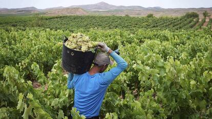 A comienzos de septiembre, José Antonio Narváez, de 31 años, irá a vendimiar a Francia por decimotercera vez. La primera campaña la hizo justo cuando cumplió la mayoría de edad y desde entonces solo ha faltado en una ocasión. “Me fui con mi tío, que es el encargado de llevar a la cuadrilla en la que voy”, explica, y cumple así con uno de los patrones habituales entre quienes a finales de agostos y comienzos de septiembre se van a recoger uvas al país vecino: ir con familiares. “De los 16 que vamos en el grupo, 11 somos tíos o primos”, ahonda este jornalero de Alcalá del Valle (Cádiz) que el resto del año participa en otras campañas agrícolas, “recogida de la aceituna o del espárrago verde, muy típico en el pueblo”.