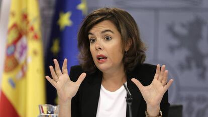 Hasta en cinco ocasiones fue preguntada este viernes la vicepresidenta del Gobierno sobre si el Ejecutivo en funciones tendrá que prorrogar los presupuestos el próximo año en caso de no lograr formar un Gobierno estable y cómo afectará eso al sueldo de los funcionarios y a las pensiones. Y en cinco ocasiones Soraya Sáenz de Santamaría eludió contestar de forma directa. Insistió una y otra vez en reclamar al PSOE que permita la investidura de Mariano Rajoy para evitar prorrogar los presupuestos. "Hace falta un Gobierno con urgencia porque no tenerlo tiene un coste", remarcó durante la rueda de prensa posterior al consejo de ministros.