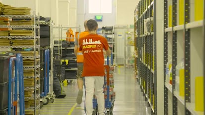 La compañía, fundada por Jeff Bezos, ha agitado el mundo de la logística en España. La carrera del comercio electrónico se libra ahora en el mundo de las entregas express. En 2012 abrió su enorme centro logístico de San Fernando de Henares, que ha ido ampliando con los años y que ahora planea combinar con otro almacén en Barcelona (en construcción), un centro logístico urbano en Madrid para las entregas inmediatas, una sede corporativa y una oficina de desarrollo tecnológico. Todo enfocado a lo mismo: acortar el tiempo entre el clic y la llegada del paquete a casa.