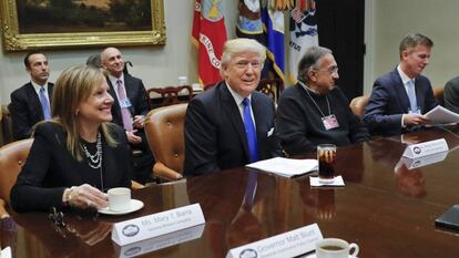 El presidente celebró un desayuno en la Casa Blanca con los consejeros delegados de General Motors, Mary Barra; Ford Motor, Mark Fields, y del grupo Fiat-Chrysler, Sergio Marchionne. La retórica de Donald Trump hacia al sector se apoya en un dato: los tres fabricantes importaron el año pasado 2,26 millones de coches. Se trata de pequeños utilitarios donde el margen de beneficio es estrecho.