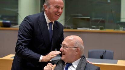 Guindos lanzó un mensaje de confianza al resto de ministros. “Es positivo que el Eurogrupo valide la opinión favorable de la Comisión sobre el proyecto presupuestario”, dijo a su entrada a la reunión. “España es un poco más optimista que la Comisión sobre el crecimiento, y es posible que con la inercia que lleva la economía Bruselas eleve sus previsiones”, añadió. “La economía española ha dejado de ser un foco de inestabilidad para Europa”, zanjó en relación al fuerte empuje del PIB y a la reducción de la tasa de paro en los últimos trimestres.