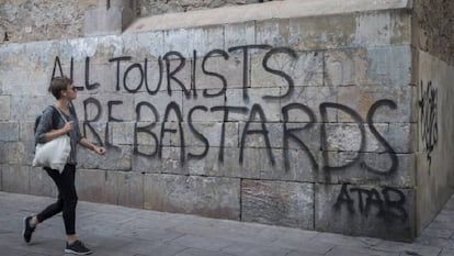 Barcelona es una de las ciudades donde más se ha plasmado la turismofobia. Según una encuesta del Ayuntamiento, a pesar de que una abrumadora mayoría de ciudadanos (el 86,7%) considera que el turismo es beneficioso, casi la mitad cree que se está llegando al límite. El turismo se ha convertido en la segunda preocupación de los vecinos. Es lo que Claudio Milano, profesor de Ostelea y miembro del grupo Turismografías, llama el “índice de irritabilidad”. “Las ciudades que viven estos fenómenos pasan de una euforia inicial a una situación de conflicto, no con los turistas, sino con las políticas turísticas”, sostiene. La turismofobia, apunta, no exclusiva de España: “Lo hemos visto en Venecia, Berlín, Toronto, Nueva Orleans o el sureste asiático”.