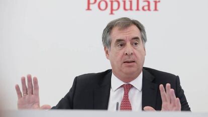 En esas condiciones, el jueves el Popular se desplomó en Bolsa casi un 18%, salvando apenas los 50 céntimos por acción. Este viernes, en ausencia de noticias, los títulos experimentaron en la apertura un efecto rebote, con picos de hasta el 6%. Era un espejismo. A media sesión, las acciones se dieron la vuelta y terminaron cayendo a plomo, otro 17,3%. De nada sirvió que el Gobierno expresase, por boca de su portavoz, Méndez de Vigo, su “tranquilidad absoluta” ante “cualquier eventualidad” relacionada con Popular, subrayando la “solidez” del sistema financiero español. Al cierre de la sesión, la acción quedó en 0,413 euros, un 38,3% menos que el viernes anterior. La entidad vale ahora en Bolsa en 1.733 millones de euros, por debajo de los 1.819 de Técnicas Reunidas. El lunes la capitalización ascendía a más de 2.700 millones.