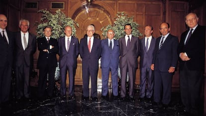 Para Luis Valls lo ideal para los ejecutivos de la gran banca era “estar cerca de la política y no sentir la necesidad de intervenir en ella”. En esos años, los empresarios (y sobre todo, los banqueros) ganaron peso político. Un peso que se reflejó en la Transición, cuando los presidentes de los siete grandes celebraban aquellas comidas en la sede del mayor (Banesto) con José María Aguirre Gonzalo como anfitrión, en las que hacían y deshacían en una actuación concertada que en estos tiempos estaría radicalmente condenada por las autoridades de la competencia.