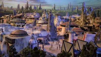 Cuando se le pregunta a Scott Trowbridge cuánto tiempo ha llevado poner en pie una atracción de Star Wars contesta: “40 años”. Desde el estreno mismo de la primera película. Trowbridge es el creativo jefe de Walt Disney Imagineering, la empresa del imperio Disney que desarrolla las atracciones de los parques. En 2019, inaugurará la primera aventura de Star Wars que no se desarrolla en una pantalla de cine, de televisión o de ordenador, sino en el mundo físico. Se llamará Star Wars: Galaxy’s edge (el borde exterior de la galaxia).