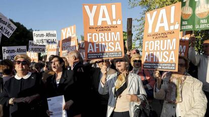 Algo más de un centenar de afectados por la supuesta estafa, en su mayoría personas mayores, acudieron a las puertas de la sede judicial, en la localidad madrileña de San Fernando de Henares. Muchos de ellos portaban pancartas con la leyenda “Justicia”.