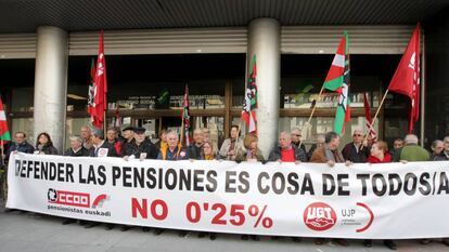 Centenares de personas se han manifestado este jueves en varias ciudades españolas para reclamar unas pensiones dignas. Sin embargo, esta movilización convocada por los sindicatos CC OO y UGT no ha sido tan multitudinaria como la anterior, celebrada el pasado 22 de febrero —a la que acudieron miles de personas—. La incesante lluvia ha desanimado a los más cautos. Los sindicatos han llamado a una nueva manifestación el próximo sábado 17 de marzo para reivindicar una subida de las pensiones superior al 0,25%, aprobado por el Gobierno para este año, en cumplimiento con la ley.