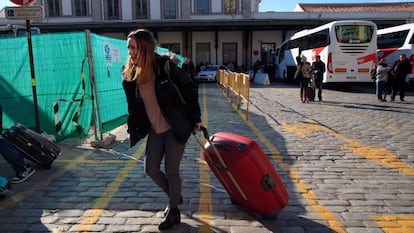 A la estación de tren de Granada los viajeros llegan en autobús. Las obras para llevar la alta velocidad a la urbe de Andalucía oriental interrumpieron el tráfico del tren convencional durante lo que iban a ser unos cuatro o cinco meses. El pasado 7 de abril se cumplieron tres años. EL PAÍS recorrió esta semana el trayecto desde Madrid a la ciudad de la Alhambra para comprobar el aislamiento ferroviario que sufre desde hace más de 1.100 días (reflejado en el vídeo superior). El trayecto incluye un viaje en AVE desde Atocha a Antequera, en Málaga, que dura poco más de dos horas y cuarto. Otros 20 minutos de espera en el municipio malagueño para el traslado al autocar y otra hora y cuarto hasta Granada por carretera. “Esto supone sobre todo una pérdida de tiempo y es una incomodidad”, se queja Eduardo Villanueva, de 71 años, residente en Venezuela, que va a visitar a su familia.