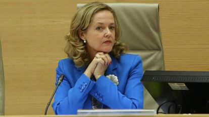 En su primera comparecencia en el Congreso, consciente de la minoría parlamentaria que sustenta al Ejecutivo, la titular de Economía ha tendido la mano a los distintos grupos políticos: "Las políticas económicas de este Gobierno dependen en gran medida de su respaldo". Y ha explicado que tiene hasta 14 transposiciones de regulación comunitaria que aún tiene que aplicar. Siete de ellas ya están en tramitación parlamentaria. Calviño incluso ha recordado que sobre varias de ellas "pesa la amenaza de cuantiosas sanciones europeas".