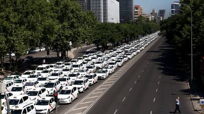 Los taxistas mantendrán la huelga y las movilizaciones tras fracasar la reunión que han mantenido hoy las principales asociaciones del sector con el Ministerio de Fomento. El Gobierno se ha comprometido aprobar en septiembre un decreto que haga cumplir el tope legal una licencia de vehículo de alquiler con conductor (VTC), como Uber o Cabify, por cada 30 de taxis. Además, transferirá a las comunidades autónomas la competencia estatal sobre VTC. Los taxistas consideran insuficiente las propuestas del Ejecutivo y piden una normativa como la aprobada por el Ayuntamiento de Barcelona de Ada Colau, que exige a los VTC una licencia extra para poder operar. La anulación cautelar de este reglamento por los tribunales fue la chispa que originó el conflicto la pasada semana en Barcelona y que se ha extendido a otras ciudades como Madrid, Sevilla o Valencia, afectando la movilidad de miles de ciudadanos y turistas. Los taxistas han colapsado el tráfico en las principales vías de esas ciudades, y han dejado sin servicio a estaciones de tren y aeropuertos con la casi nula intervención policial. Unauto, la patronal de empresas de VTC, ha denunciado la violencia de los taxistas con agresiones a sus conductores y el destrozo de un centenar de vehículos.