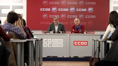 Ambos sindicalistas no dejaron pasar la ocasión de atacar a Vox. No llegaron a mencionar al partido ultra, pero sí lamentaron su influencia en el debate público. “Las dos organizaciones vamos a combatir este proceso de involución al que ciertas fuerzas políticas quieren someter a la mujer en este país”, advirtió Álvarez.