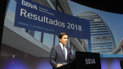 El BBVA gana 5.324 millones en 2018, un 51,3 % más, por las plusvalías de la venta de la filial de Chile