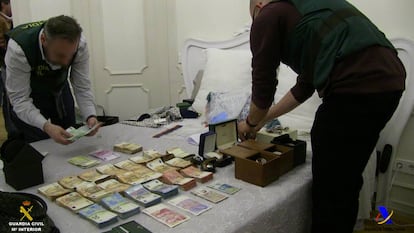 Agentes de la Unidad Central Operativa (UCO), en colaboración con la Oficina Nacional de Investigación del Fraude (ONIF), han desmantelado en los últimos 15 días dos grandes tramas empresariales, las mayores detectadas hasta la fecha, que se dedicaban a esta modalidad delictiva en la venta al por mayor de hidrocarburos. Entre ambas habían dejado de ingresar al fisco más de 150 millones de euros en este tributo. Una cifra que, según ha destacado este jueves el comandante Antonio Balas, responsable de las pesquisas, habría permitido "construir 25 kilómetros de vía del AVE o 50 de autopista". La macrorredada se ha saldado, además, con 21 detenidos, en su mayoría de nacionalidad española. Entre ellos se encuentran algunos imputados en otras operaciones similares. También se han intervenido dos millones de litros de combustible que acababan de llegar en un petrolero a puerto, 61 vehículos de alta gama y dos barcos de lujo, y se han bloqueado cerca de 350 cuentas bancarias y 155 inmuebles, estos últimos valorados en 50 millones de euros. En efectivo, los agentes localizaron en cajas fuertes e incluso escondidos en una moto cerca de un millón de euros en total.