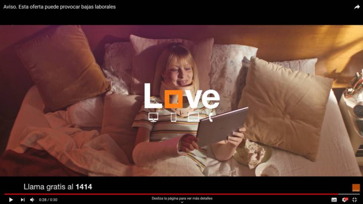 La campaña en cuestión, que estaba siendo emitida hasta ayer, oferta una promoción con el paquete de servicios Love, que ofrecen conexión por fibra y móvil, e incluye una suscripción gratuita temporal a Netflix, la plataforma de series y cine. El anuncio viene encabezado por un aviso con el lema "Esta oferta puede provocar bajas laborales". Además, durante el vídeo se puede ver a un hombre y a una repartidora de comida que, pese a lesionarse jugando al fútbol y montando en patinete, respectivamente, se muestran luego felices en sus sofás viendo Netflix en la televisión de Orange. Lo mismo ocurre con un cocinero que se corta un dedo accidentalmente. Además, durante el anuncio una locución señala "Qué buen momento para pasarse una temporadita de baja".