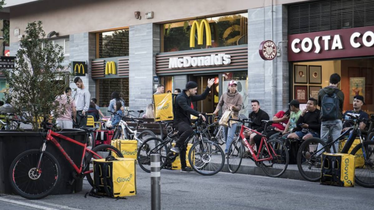 A los pies de la Sagrada Familia de Barcelona decenas de repartidores se confunden con los turistas. Van y vienen de los restaurantes de comida rápida en un hormigueo de motos y bicicletas. Trabajan para empresas como Glovo, Deliveroo, Stuart o Uber Eats pero no son sus empleados, ya que se pagan sus cotizaciones sociales bajo el régimen de autónomos. Muchos de ellos han migrado a España y han encontrado en este empleo la manera de enviar dinero a casa. Intentan hacer 10 o 12 horas al día para entregar el máximo número de pedidos y muchos reconocen haberse saltado semáforos o hacer imprudencias para correr y facturar más.
