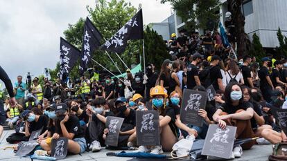 Este lunes, miles de estudiantes universitarios y de instituto de Hong Kong no acudieron a clase y se manifestaron por la democracia en el enclave, tras un fin de semana de protestas violentas.