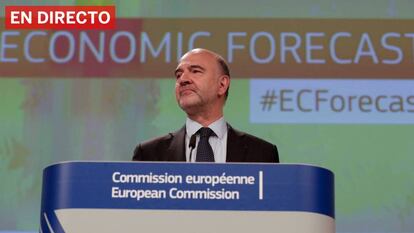El comisario europeo de Asuntos Económicos, Pierre Moscovici, y el vicepresidente de la Comisión Europea, Valdis Dombrovskis, comparecen este miércoles en Bruselas para presentar la evaluación que ha realizado el brazo ejecutivo de la UE sobre los planes remitidos por los Gobiernos europeos sobre sus próximos presupuestos. Tras examinar los planes remitidos por España para 2020, la Comisión ha alertado en un borrador al que ha tenido acceso este diario de un "riesgo de desviación significativa" respecto a las reglas comunitarias. En el documento, advierte a España por el peligro de apartarse de los ajustes requeridos y por no realizar un "progreso suficiente" en la reducción de la deuda. Además, el texto contiene varios avisos sobre la evolución de las finanzas públicas y ciñe los márgenes en los que se podrá mover el futuro Gobierno si —como reza el pacto entre el PSOE y Podemos— quiere actuar "con arreglo a los acuerdos de responsabilidad fiscal de España con Europa".