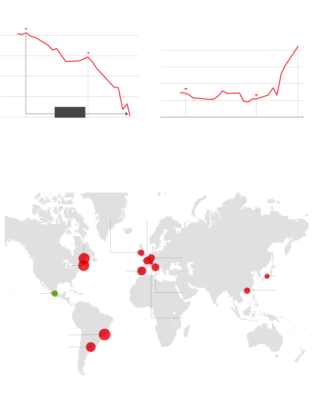 España confinada en casa; varios países de la Unión Europea echando el cerrojo a sus fronteras; la enfermedad avanzando sin freno en el norte de Italia; el presidente de la Reserva Federal, Jerome Powell, reconociendo implícitamente que en su hoja de ruta ya está la recesión. Se abre un escenario inédito marcado por una palabra: temor. Temor al virus y sus consecuencias. Temor a algo para lo que nadie estaba preparado. Temor, en definitiva, a lo desconocido. “En circunstancias normales, una amplia respuesta de política monetaria como la del domingo pondría un suelo para los activos de riesgo y ayudaría a su recuperación”, apunta Jason Daw, de Société Génerale. “Sin embargo, la magnitud del choque sobre el crecimiento se está volviendo exponencial y los mercados, con razón, se cuestionan qué más se puede hacer”. China, que solo ahora empieza a ver la luz al final del túnel del coronavirus, marca la pauta en lo que a consecuencias económicas se refiere. Y lo poco que se va conociendo del gigante asiático no es nada alentador: en los 60 primeros días del año la producción industrial se desplomó un 13,5% anual, las ventas minoristas cayeron un 20% y el paro alcanzó el 6,2%, nivel récord para un mes de febrero. En todos los casos, más de lo que esperaban en un principio las principales casas de análisis.