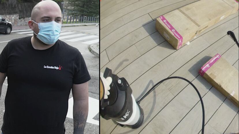 Entre las decenas de llamadas que recibe al día José Ramón Barrigüete del Nogal, la de hoy es una de las más extrañas que le ha tocado atender: un servicio de desinfección de cajas que una mujer había pedido a la empresa de mensajería Amazon. La usuaria, residente en el barrio de Aravaca (Madrid), no quería tocar nada antes de ser desinfectadas, por lo que el mensajero dejó el envío en el jardín de su casa a la espera de La Escoba Roja. La empresa que gestiona este madrileño de 32 años ha cambiado radicalmente su actividad durante este mes debido a la crisis del coronavirus.