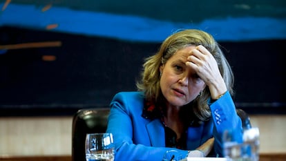 Nadia Calviño (A Coruña, 51 años) recibe a EL PAÍS en la sede del Ministerio de Economía el pasado viernes. Las instalaciones están desiertas. Ni rastro del bullicio habitual. Solo el personal de seguridad imprescindible. La reunión no se celebra en su despacho, sino en una amplía sala que cuenta con una mesa muy alargada, que permite mantener las distancias, que exige la emergencia sanitaria. Visiblemente cansada por las horas de trabajo de las últimas semanas, Calviño pide una respuesta coordinada desde Europa para afrontar el shock. Defiende las últimas medidas aprobadas para tratar de que nadie se quede atrás, pero no se atreve a pronosticar cuánto durará está crisis.