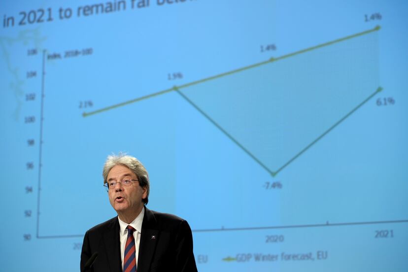 A pesar de andar a tientas, Bruselas sabía que la temperatura de su economía era gélida. “La actividad cayó un tercio de la noche a la mañana”, resumió Gentiloni. La Comisión por fin pudo ponerle el termómetro. Todo apunta a que la UE vive el peor trimestre de su historia, con un derrumbe que podría llegar al 16%. El fin de las medidas de confinamiento debería suavizar esa bajada y dejarla en el 7,7%, si bien en el escenario más adverso Bruselas contempla una caída del Producto Interior Bruto del 15,5%.