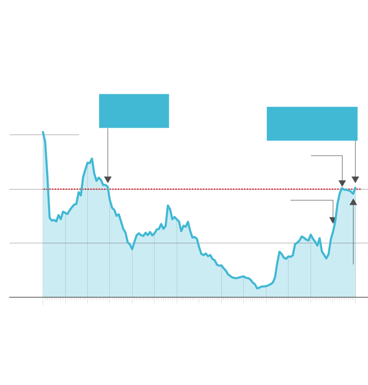 El resultado es que la deuda pública ya está otra vez en unos niveles máximos también cuando se mide en función de la capacidad económica del país: se ha ido al 101% del PIB, calculado con los últimos cuatro trimestres de producto interior bruto, unas cotas que no se llegaron a tocar ni en la pasada crisis y que no se habían visto desde 1909, según los datos del historiador económico Francisco Comín. En ese año se registró un 102,1%. Y al siguiente ejercicio el endeudamiento bajó hasta el 89,7% por una reestructuración.