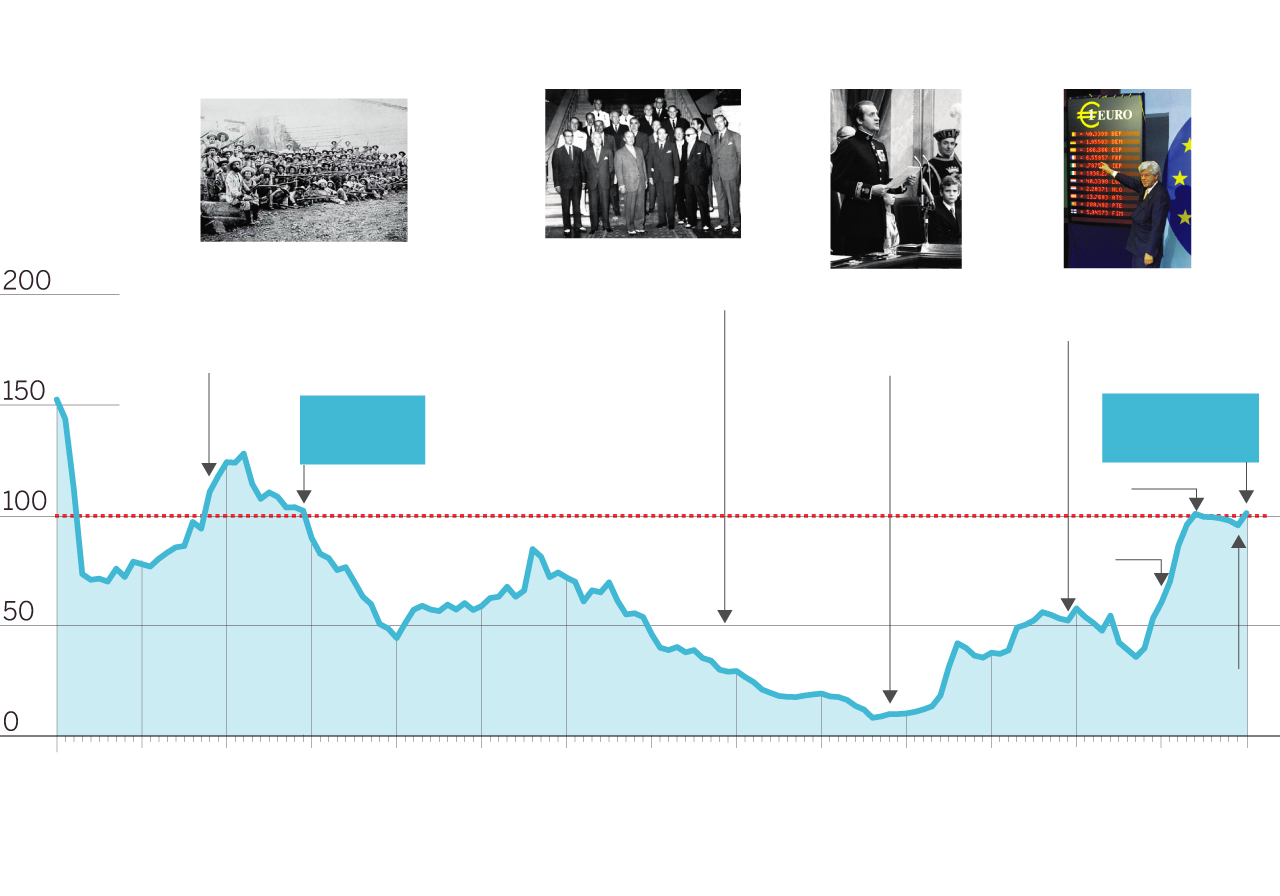 Fuente: Francisco Comín: La crisis de la deuda soberana en España (1500-2015) y elaboración propia.