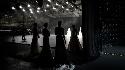 Sin posibilidad de tocar los tejidos o ver de cerca la caída de un vestido, la moda nupcial se enfrenta al reto de llegar a los consumidores a través de la pantalla. Para que este viraje digital no decepcione, la Bridal ha recurrido a una compañía capaz de montar espectáculos que van más allá de lo terrenal. La Fura dels Baus, que cuenta con un departamento de innovación, ya tenía alguna experiencia con el mundo de la moda, y esta vez ha creado un inmenso plató donde se han grabado los shows, dentro de un pabellón de Fira, y se ha encargado del diseño de la aplicación para visualizar todo el montaje.