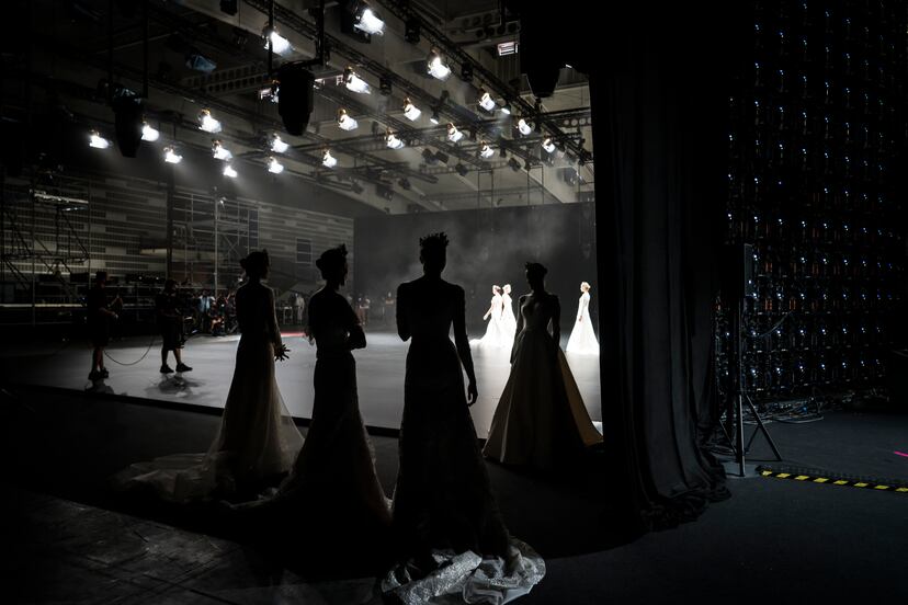 Sin posibilidad de tocar los tejidos o ver de cerca la caída de un vestido, la moda nupcial se enfrenta al reto de llegar a los consumidores a través de la pantalla. Para que este viraje digital no decepcione, la Bridal ha recurrido a una compañía capaz de montar espectáculos que van más allá de lo terrenal. La Fura dels Baus, que cuenta con un departamento de innovación, ya tenía alguna experiencia con el mundo de la moda, y esta vez ha creado un inmenso plató donde se han grabado los shows, dentro de un pabellón de Fira, y se ha encargado del diseño de la aplicación para visualizar todo el montaje.
