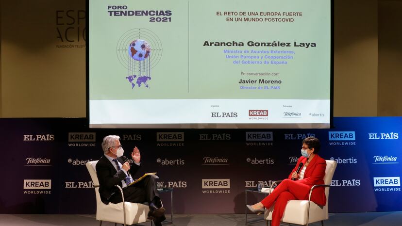 Las restricciones fronterizas que imponen muchos países europeos a España por la incidencia del coronavirus lastran la recuperación del país. Este desafío, poco ligado a la política exterior, centra desde hace semanas la acción de la ministra de Exteriores, Arancha González Laya. “Lo más dañino de la arbitrariedad en la gestión de fronteras es el cierre total. No vamos a matar moscas a cañonazos. Hay que ofrecer respuestas proporcionadas”, ha reclamado este jueves la titular de Exteriores en una conversación con el director de EL PAÍS, Javier Moreno, organizada en el Foro Tendencias que celebra el diario en Madrid.