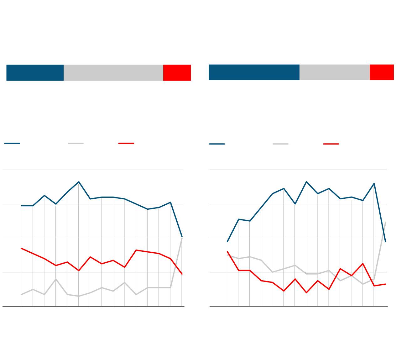 Las sociedades participantes en el sondeo cerraron un buen 2019, con incrementos en facturación, rentabilidad e inversión en más de la mitad de los casos. Pero la economía es un juego de expectativas, y estas caen significativamente: baja en 14 puntos el porcentaje de empresas que esperan incrementar plantilla con respecto a la encuesta anterior; en 10 puntos bajan los que esperan aumentos de rentabilidad, y se desploman literalmente las proyecciones de inversión. La facturación es el único indicador que mantiene el mismo comportamiento que en oleadas anteriores: la mitad de las empresas esperan que le vaya mejor, un 35% se ven estancadas y el 14% son optimistas.