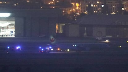 Aterriza sin problemas en Barajas el avión canadiense con daños en una rueda y un motor