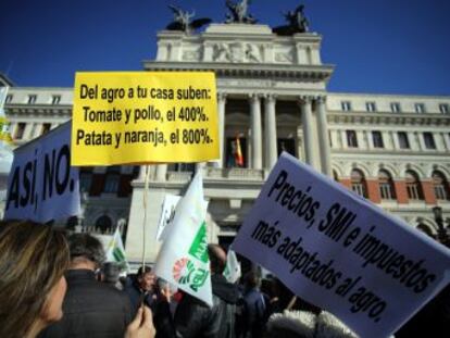 EL PAÍS VÍDEO acompaña a varios trabajadores del campo que se han concentrado frente al ministerio